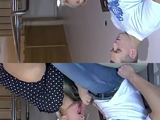 Milf gives heads on the stairs