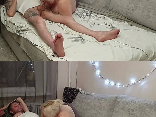 Our risky lesbo mutual masturbation next to my stepmom