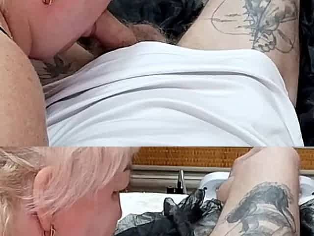 Milf mother-in-law Zona901 gives a handjob and a blowjob, finishing with cum on her face