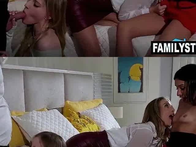 Stepmom Shares Bed In Hotel Room - Stepsister Joins In - Petite Deepthroat
