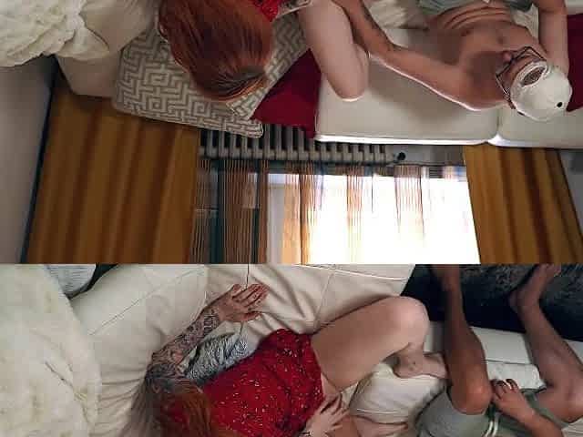 La matrigna ti becca con i suoi tacchi e ti fa un footjob finché non sborri