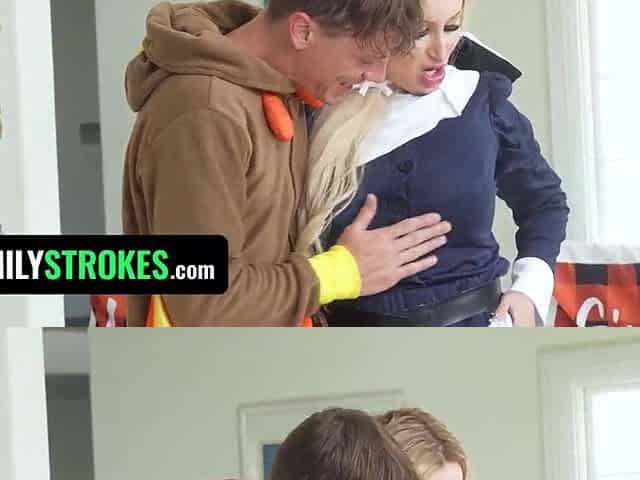 My step-mom came out into the living room in a slutty mrs. claus clothing & gave my gf a dildo