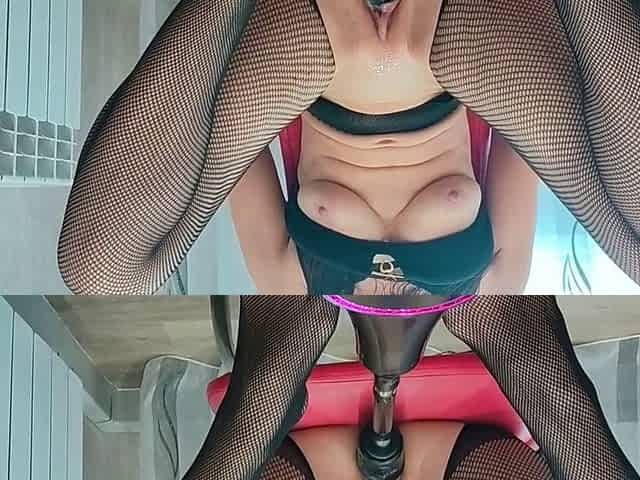 Step-mom Elizabetbag rides a massive dildo at full throttle