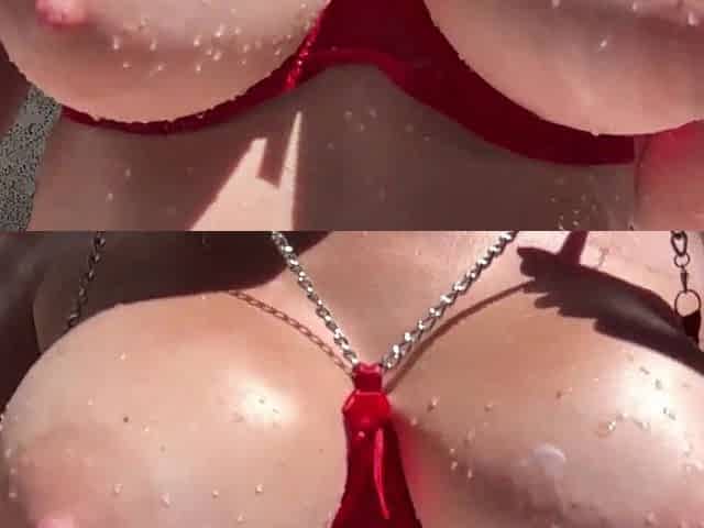 European Stepmom Artemisia Love Showing her soaked breasts outdoor and playing with 'em for u