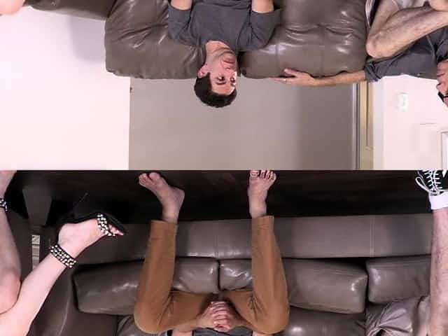 "Step mom pulled out step son dick under blanket and handjob his cock"