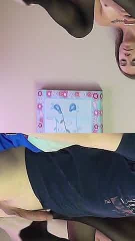 Stepsister in leggings gets slapped for going commando by her stepbrother
