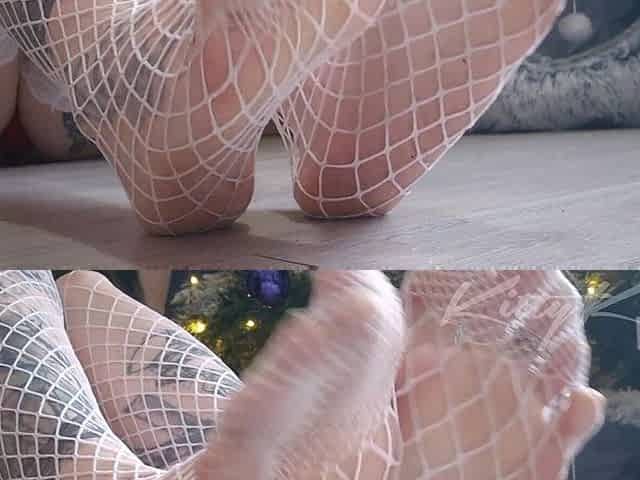 White Fishnet Toe Wiggles Spreads & Scrunches - Christmas