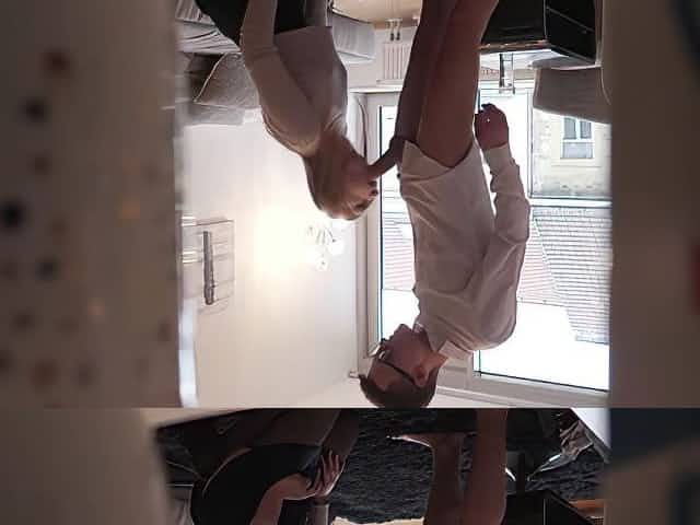 Lascivious blond mother i'd like to fuck in erotic, ebony stockings is having anal sex in the living room