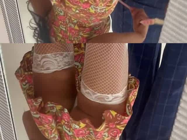 Phone Number Anal Plug; Bead Chain; Bare-bottomed Ultra-short Skirt; White Stockings