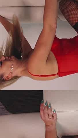 Sexy blonde with pinkg stockings