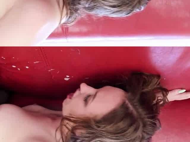 StrapOn Lesbian with big boobs fucks her blonde sexy GF