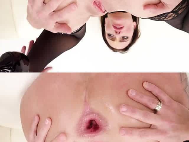 Euro beauty in stockings jumps on meatpole