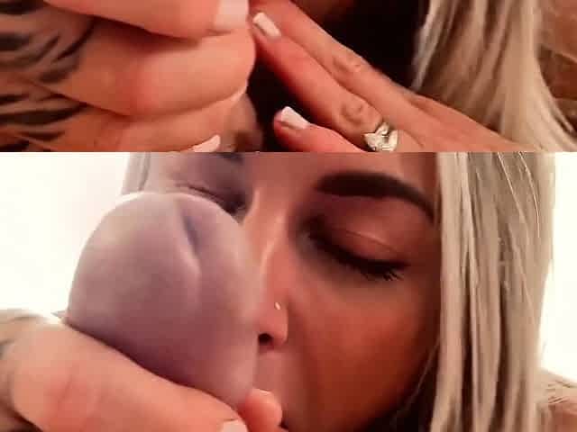 Amateur blonde and brunette lesbians on webcam
