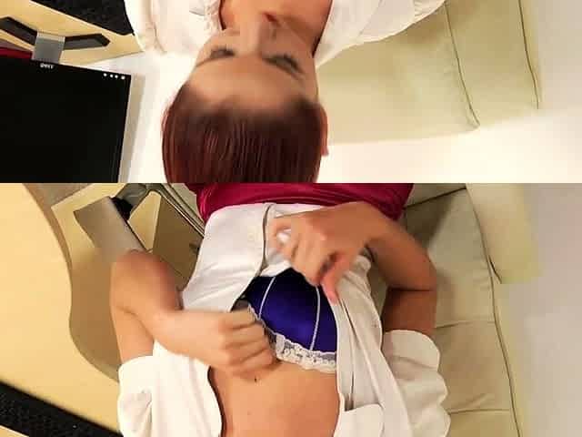 Foxy jap redhead in big boobs blowing loaded cock with lust