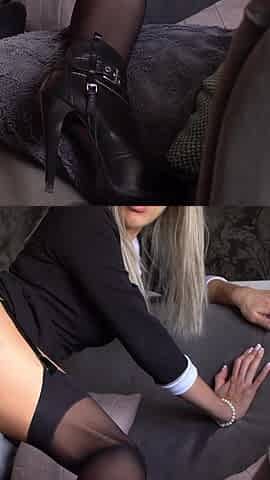Working Legs in Stockings and Sweet Pussy Modest