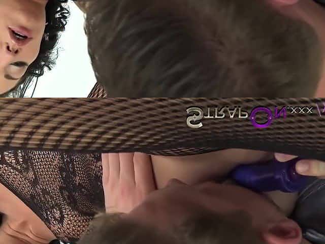 Wearing only black stockings busty bombshell takes fat BBC into her juicy ass