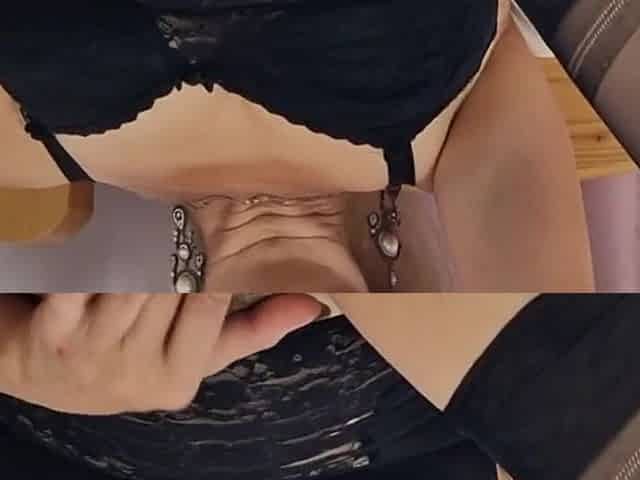 Big Pussy - She Stretches Her Pussy With A Big Dildo While He Is Watching And Wanking 5 Min