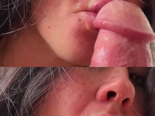 Pov blowjob and doggystyle sex with a shaved pussy brunette