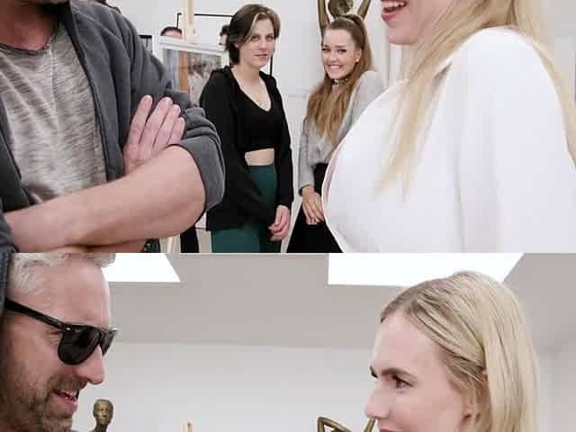 A Blonde In Stockings Gets Double Penetrated While A Big Cock Is In Her Mouth