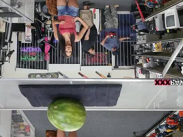 Inexperienced babe blows in a pawnshop before eagerly swallowing