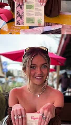 Naked Alisa eating salad in the store
