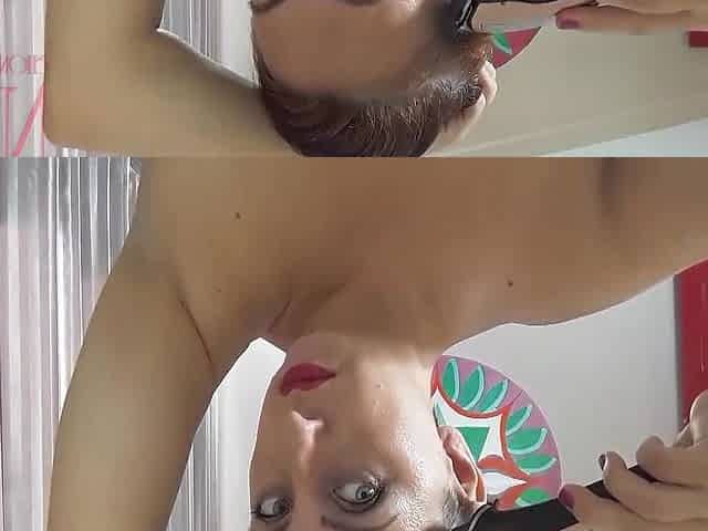 Nudist Hairdresser. She Cuts Her Own Hair Nude Barber Shop. Naked Stylist. Head Shaving. Bald Head - Regina Noir