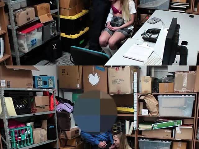 Pleasant brunette hair is having sex with a security man after getting caught shoplifting, the other day