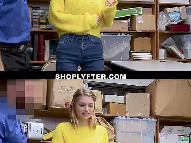 Nerdy blond hottie with glasses is about to get screwed, cuz that babe was caught shoplifting