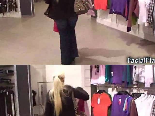 Cindy Dollar facial jizz flow in shopping center