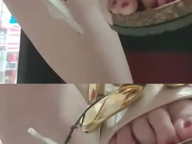 In a Public Shop Nicoletta Tries on Sandals with Her Sweaty Feet All Dirty