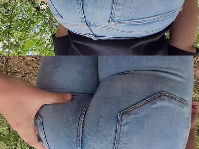 Grabbing Constricted Jeans Large Butt Brunette hair Stranger in the Forest