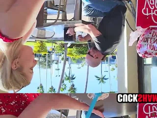 Cherie is sucking on a flabby jock stranger