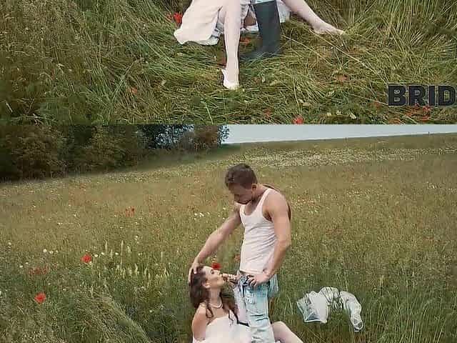 BRIDE4K. Her fiancé was so boring so this babe decided to run away and suck a stranger’s wang in the field
