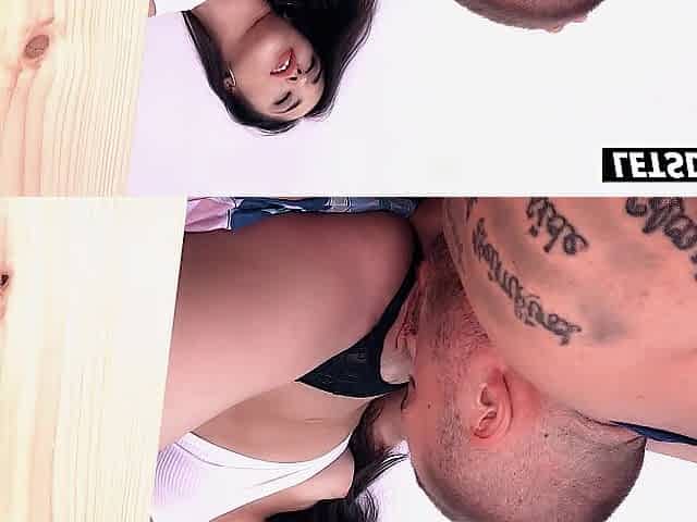 Exchange student CandyBell has wild hotel room session with a stranger in all kinds of positions