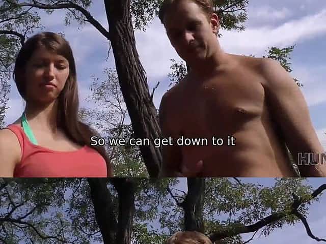 Outdoor fucking in the woods with amateur blonde Serena and a stranger