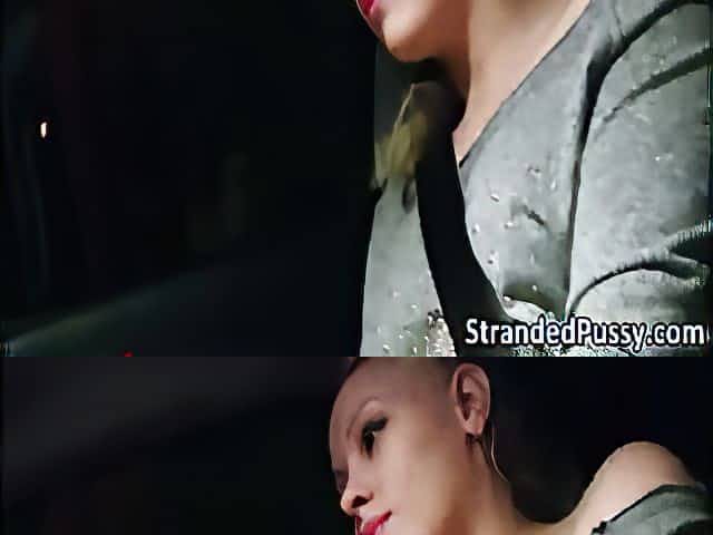Trampy dark-haired is providing an awesome suck off to a stranger, to get a free-for-all rail home