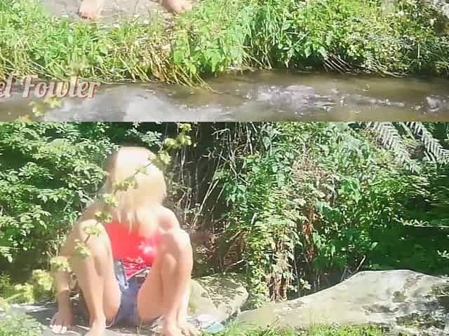 Sexy Girl Pissing On The Grass Between The Forest River - Almost Caught By Strangers Angel Fowler