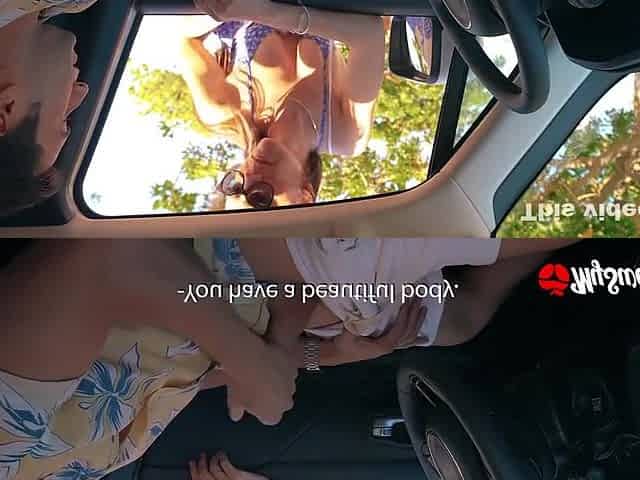 Slender wench gave herself to a rich dude on the coast for a cabriolet