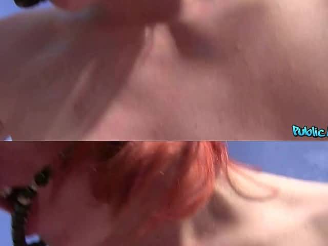 Hot redhead babe Amarna Miller gives an amazing blowjob to a stranger