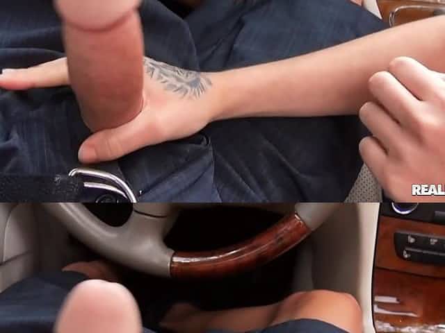 Lovely babe Mia Hurley talks with a stranger in the backseat