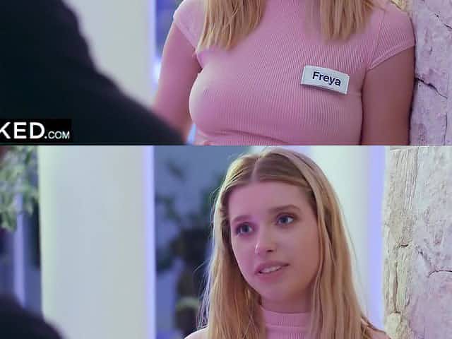 Blonde girl Dixie Belle gives head to a stranger and gets fucked