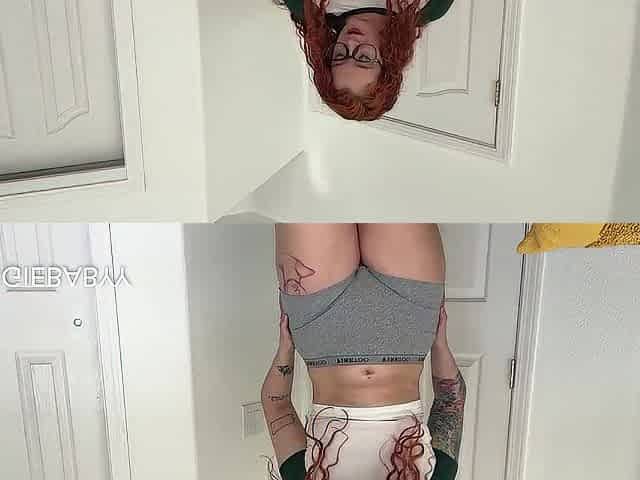 veggiebabyy strap and panty try on - tattooed redhead with a great booty