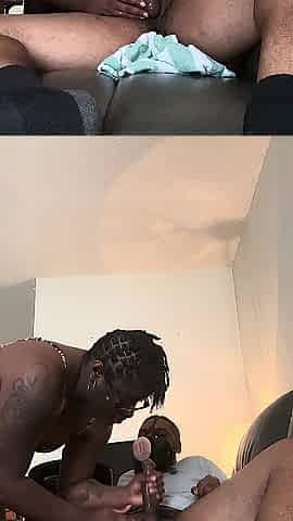 Latina and ebony lesbians having very passionate sex with a big black strapon and squirting