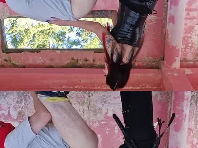 Female-dom Nika banged her thrall out of lube in an abandoned building.