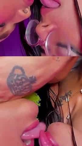 Blonde and Brunette Lesbians Explore Fetish Fantasies with