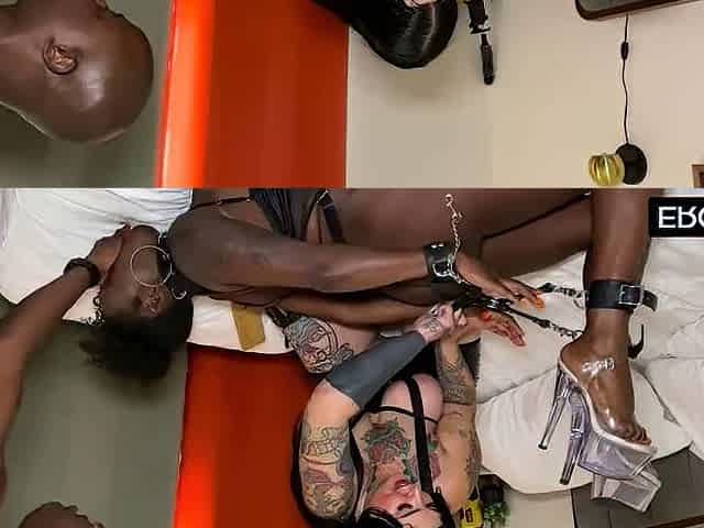 Femdom fetish mistresses fuck bdsm loser with strapon