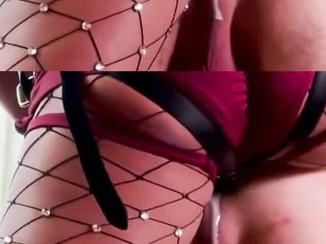 Ugly latex femdom giving analplay