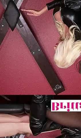 Sub Masked - Dominatrix In Latex Dominates Masked Sub On Couch