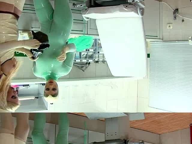 Leather latex CFNM domina pegging sub with strapon in BDSM