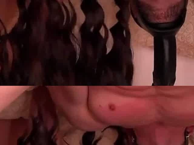 Femdom hammers sub with plastic cock